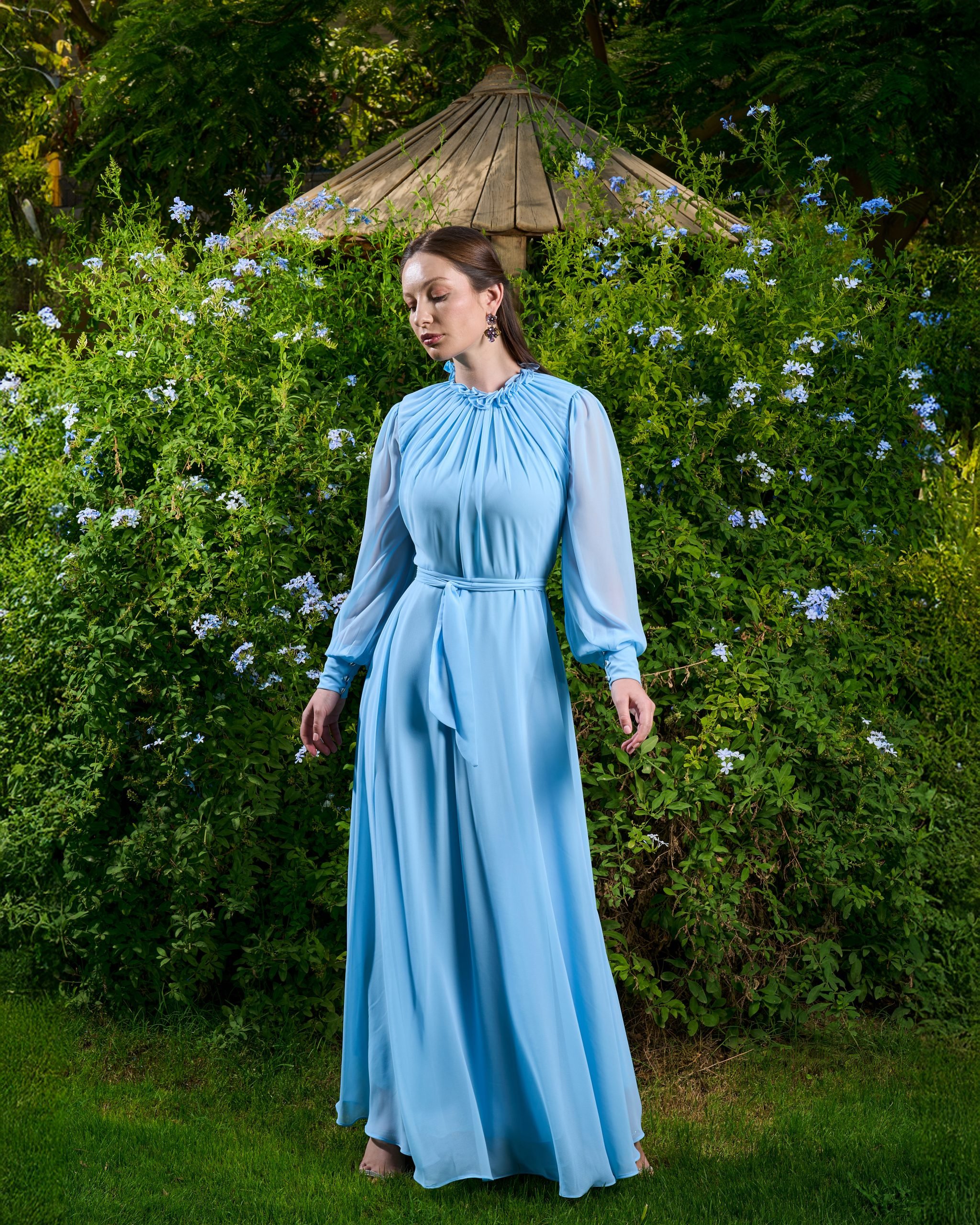 Material: lined ChiffonSize:Our model is wearing size SOur Model Size:Height: 175cmWeight: 59 kgS: 50:55 KGM: 60:65 KGL: 70:75 KGXL: 80:85 KGXXL: 90:95 KGPRODUCT CARE:It’s preferable to dry-clean all our productsIron maximum at 40c