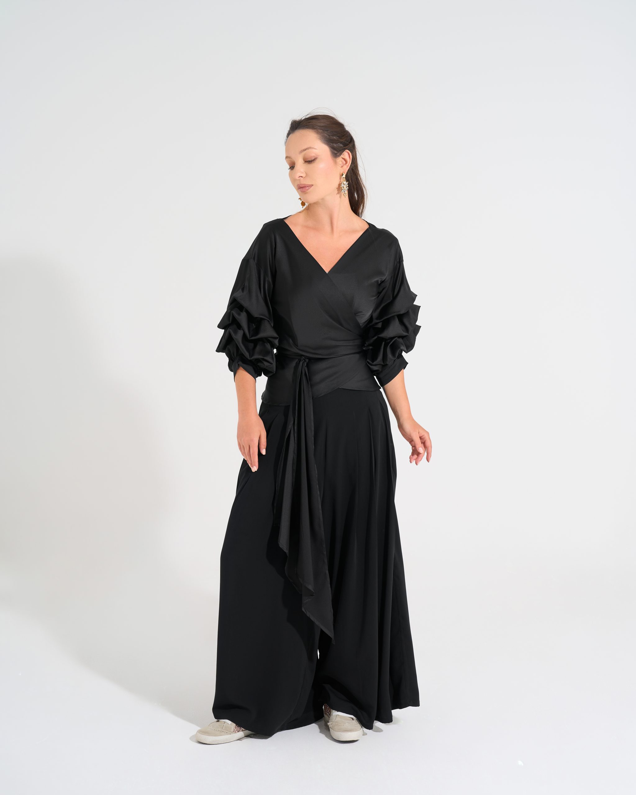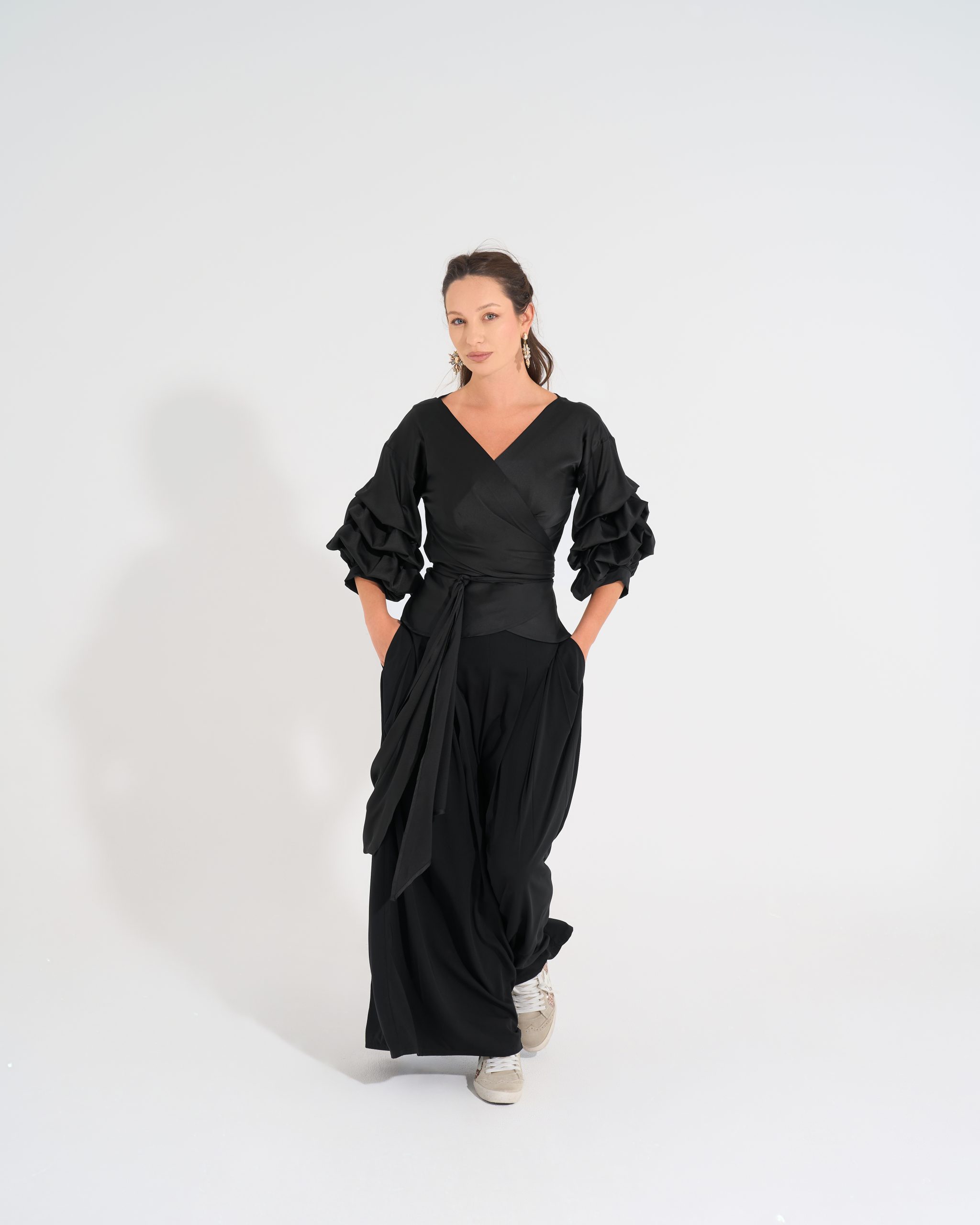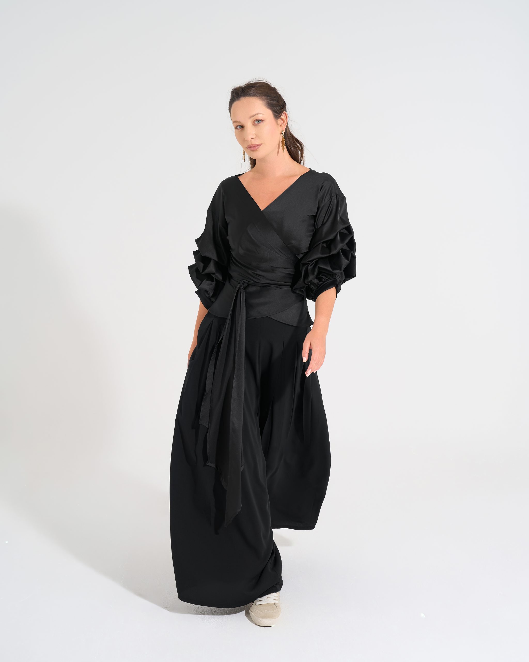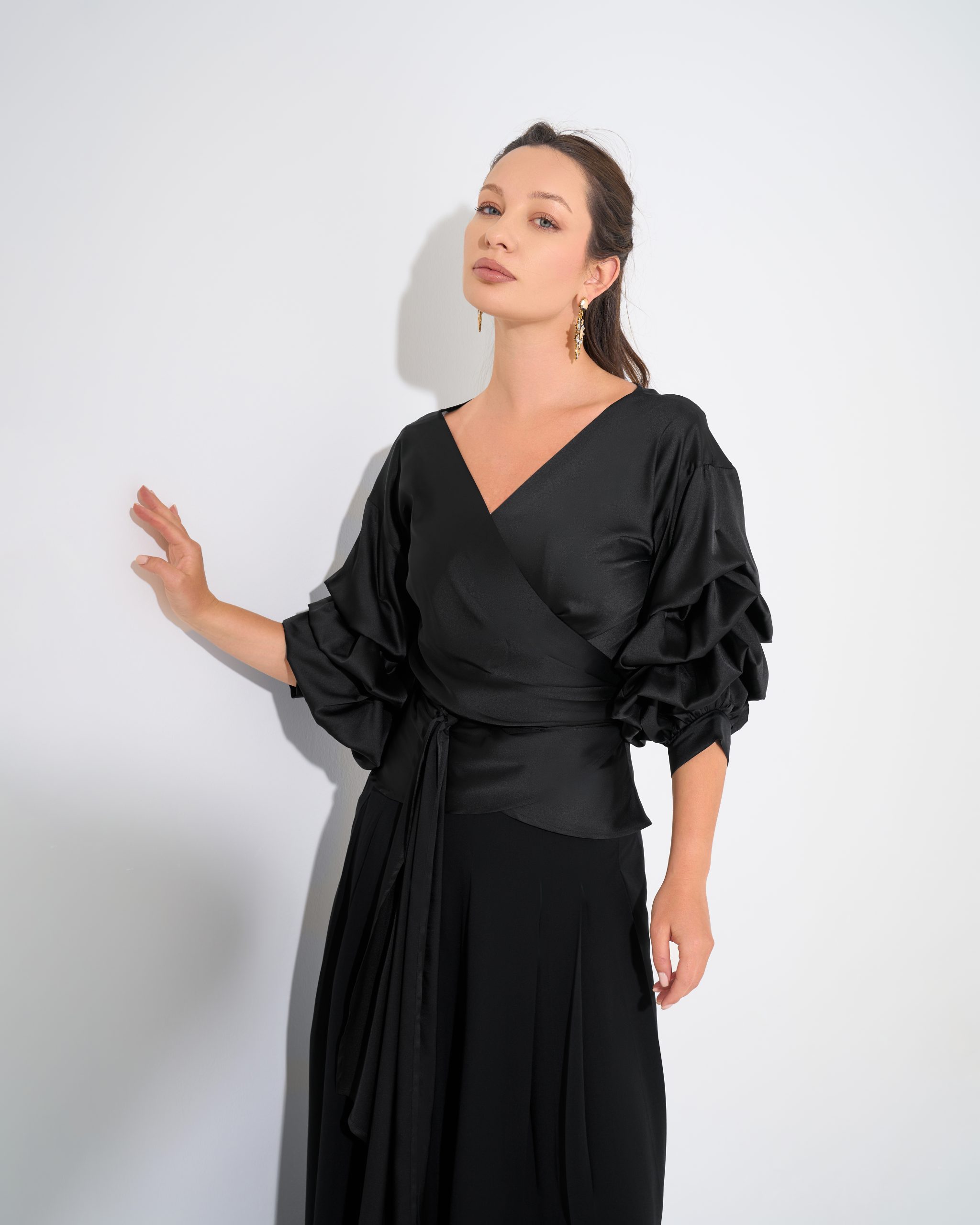 Cross-over blouse with sleeve details