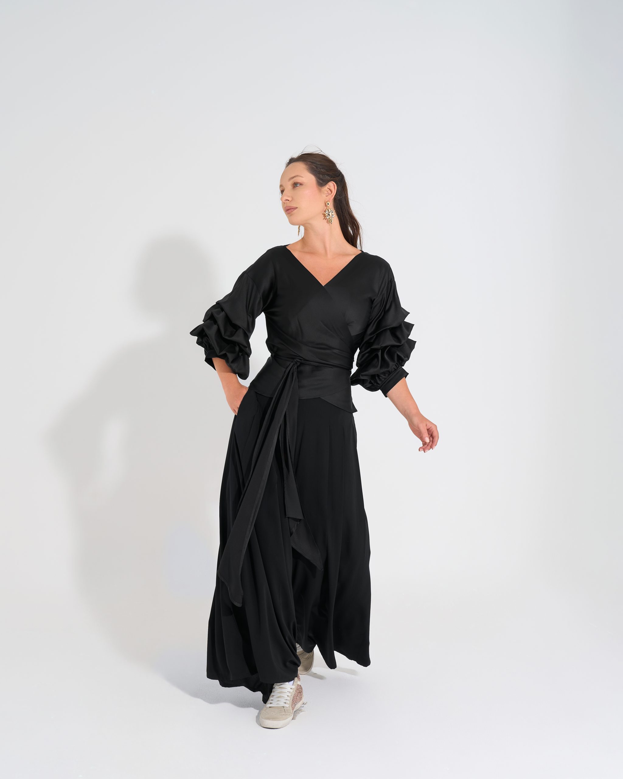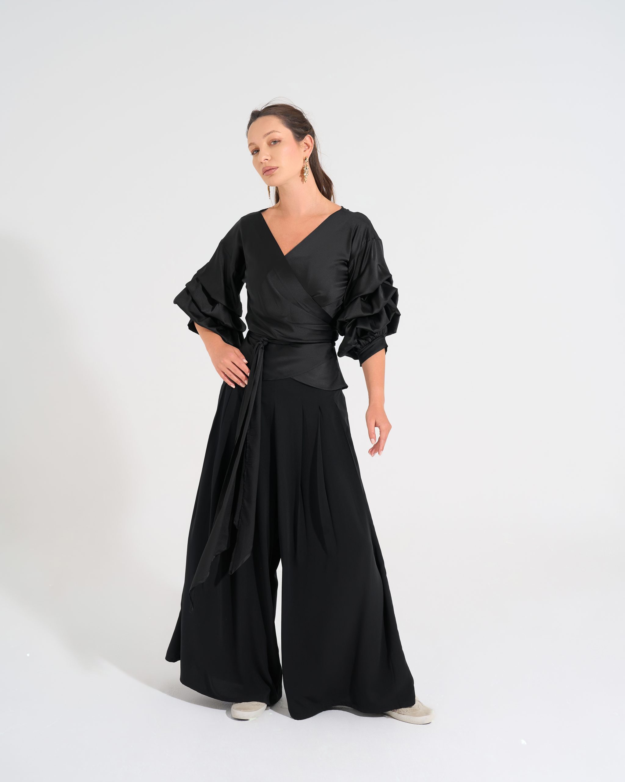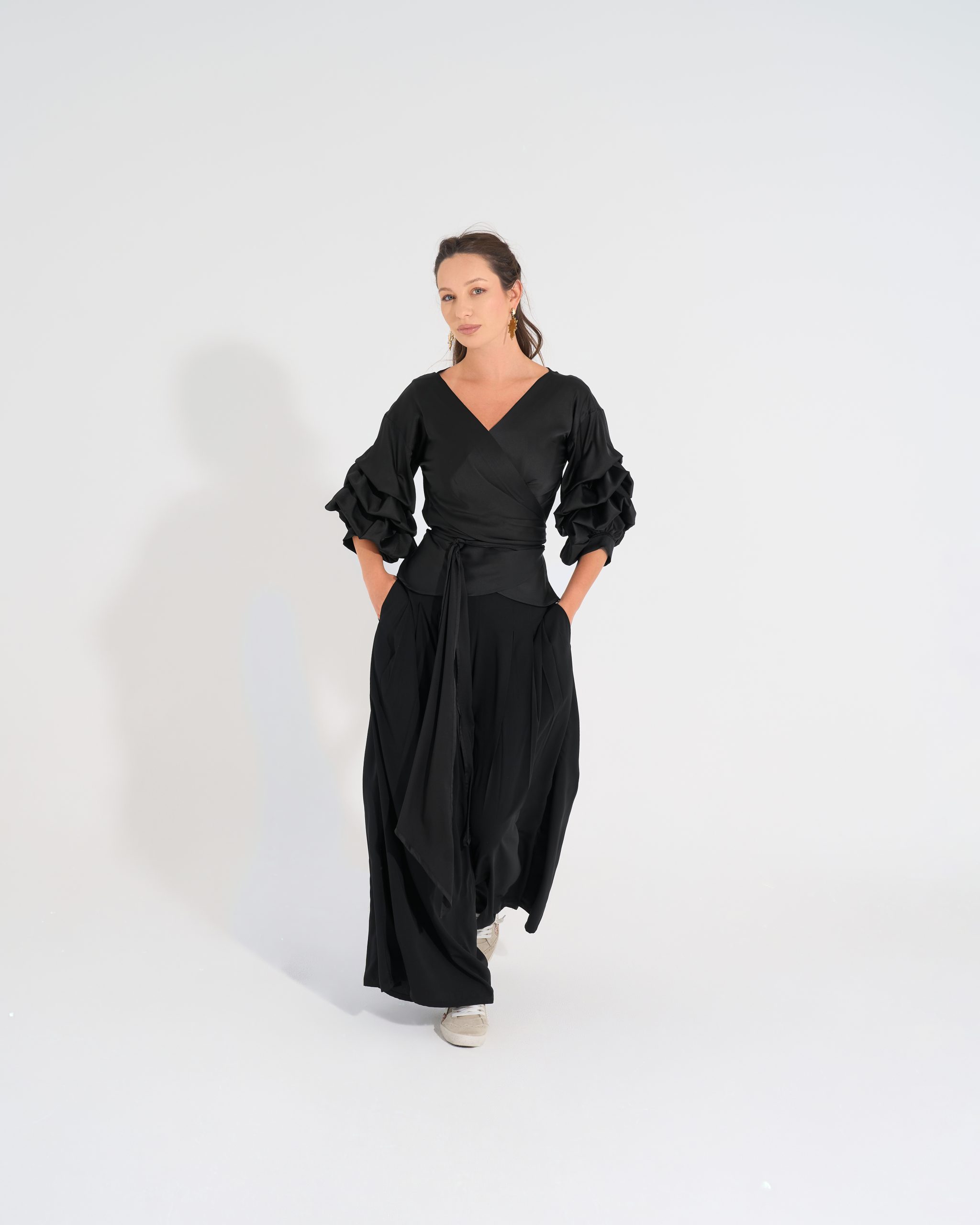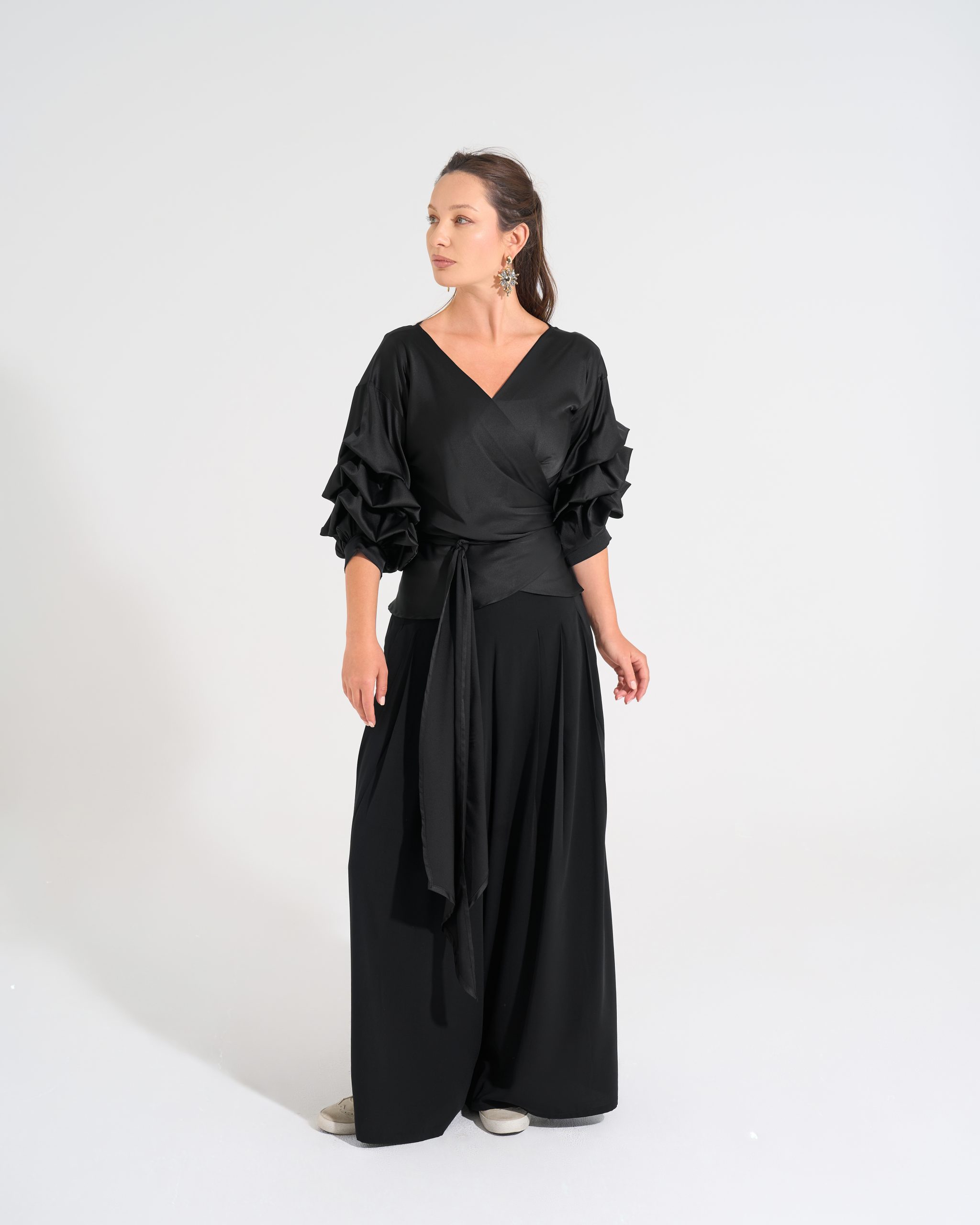 Cross-over blouse with sleeve details